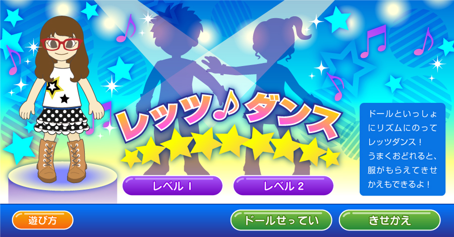 入力に合わせて中央のドールがポーズをとり、ダンスをしているように見せる演出を取り入れています。