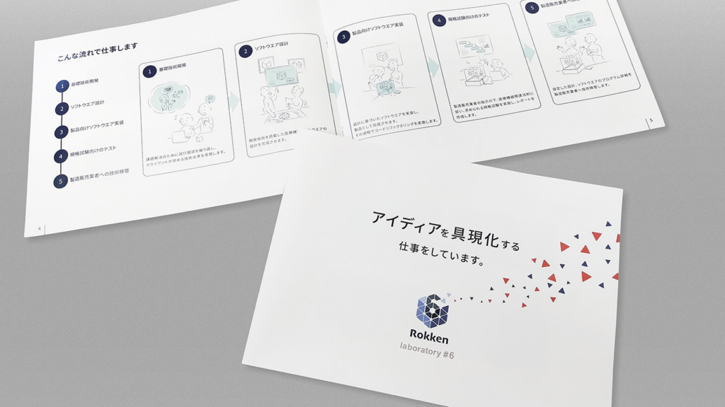 自社用に設計したパンフレットフォーマットを流用し、制作スピードとコスト効率を確保しながら、企業のコンセプトをシンプルに可視化。
